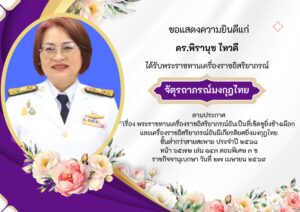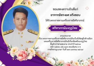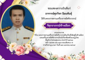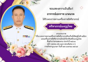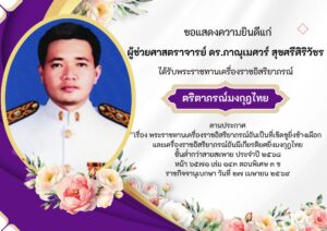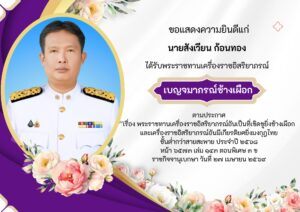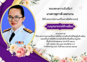 นับเป็นเกียรติประวัติอันทรงคุณค่า และเป็นแบบอย่างที่ดีในการปฏิบัติหน้าที่ราชการ ด้วยความมุ่งมั่น ทุ่มเท และเสียสละเพื่อองค์กรและสังคม
