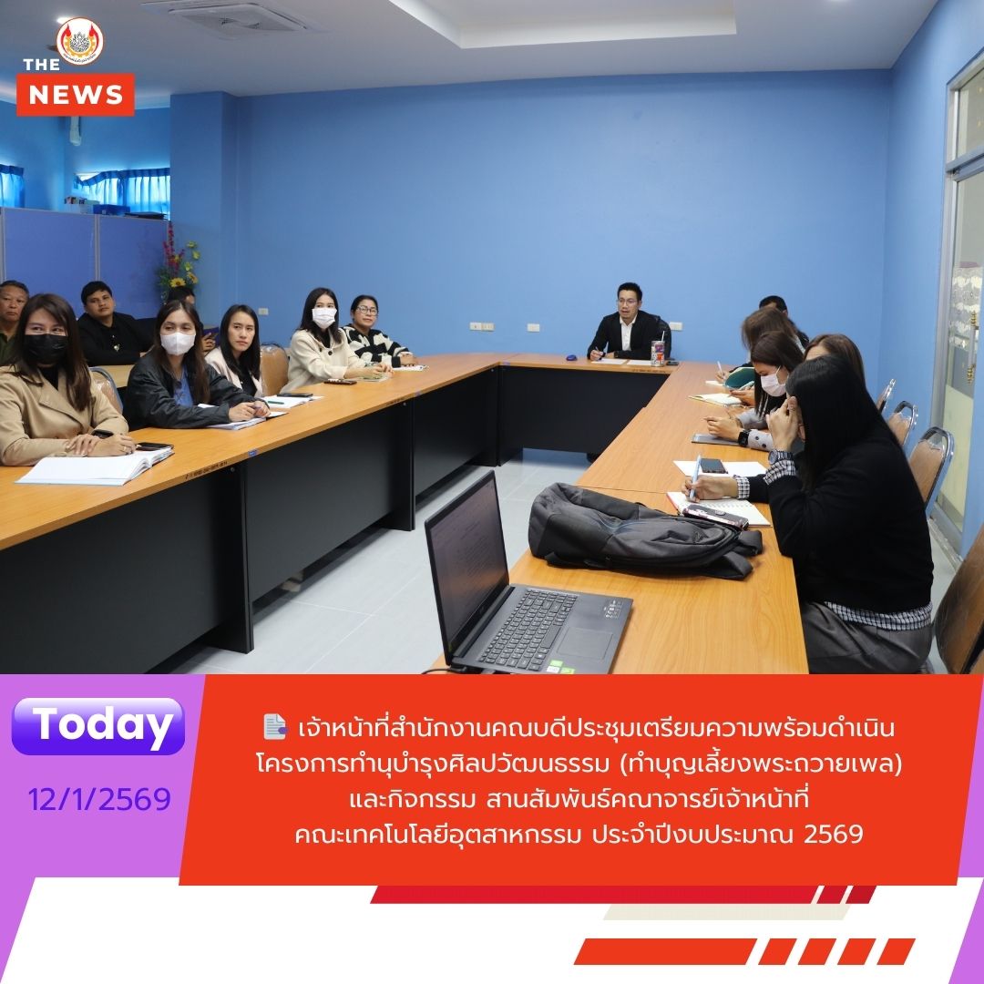 นายพงศกร เดชศิริ รักษาราชการแทนหัวหน้าสำนักงานคณบดี พร้อมด้วยเจ้าหน้าที่สำนักงานคณบดี คณะเทคโนโลยีอุตสาหกรรม ได้ประชุมเตรียมความพร้อมในการดำเนินโครงการทำนุบำรุงศิลปวัฒนธรรม
