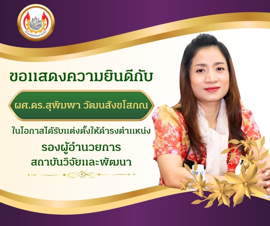 ขอร่วมแสดงความยินดี และขออำนวยพรให้ท่านประสบความสำเร็จในการปฏิบัติหน้าที่ มีพลัง ความมุ่งมั่น และเป็นกำลังสำคัญในการขับเคลื่อนงานด้านการวิจัยและพัฒนาของมหาวิทยาลัยให้ก้าวหน้าอย่างยั่งยืน