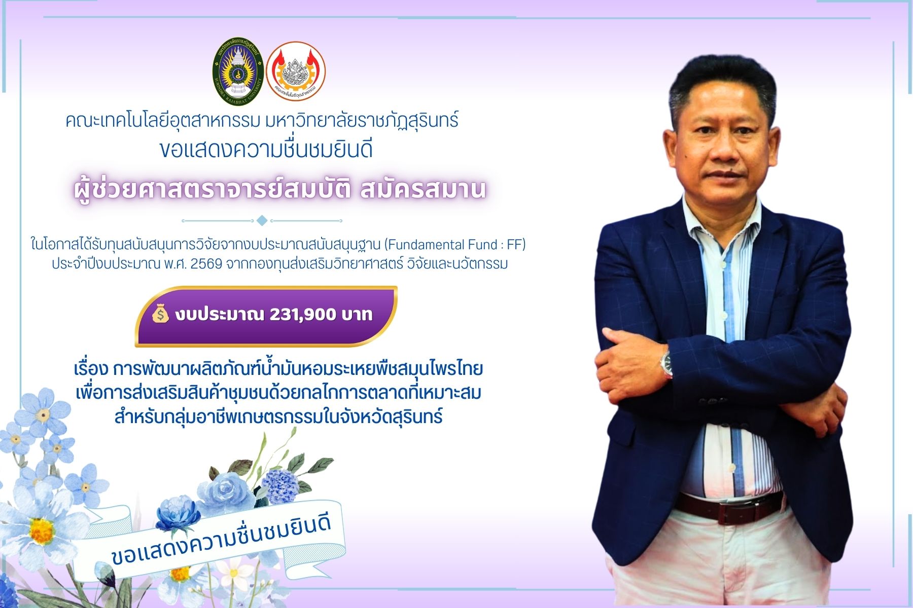ในโอกาสได้รับทุนสนับสนุนการวิจัยจากงบประมาณสนับสนุนฐาน