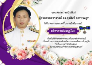 ขอแสดงความยินดีแก่บุคลากร ในโอกาสได้รับพระราชทานเครื่องราชอิสริยาภรณ์ ดังรายนามต่อไปนี้